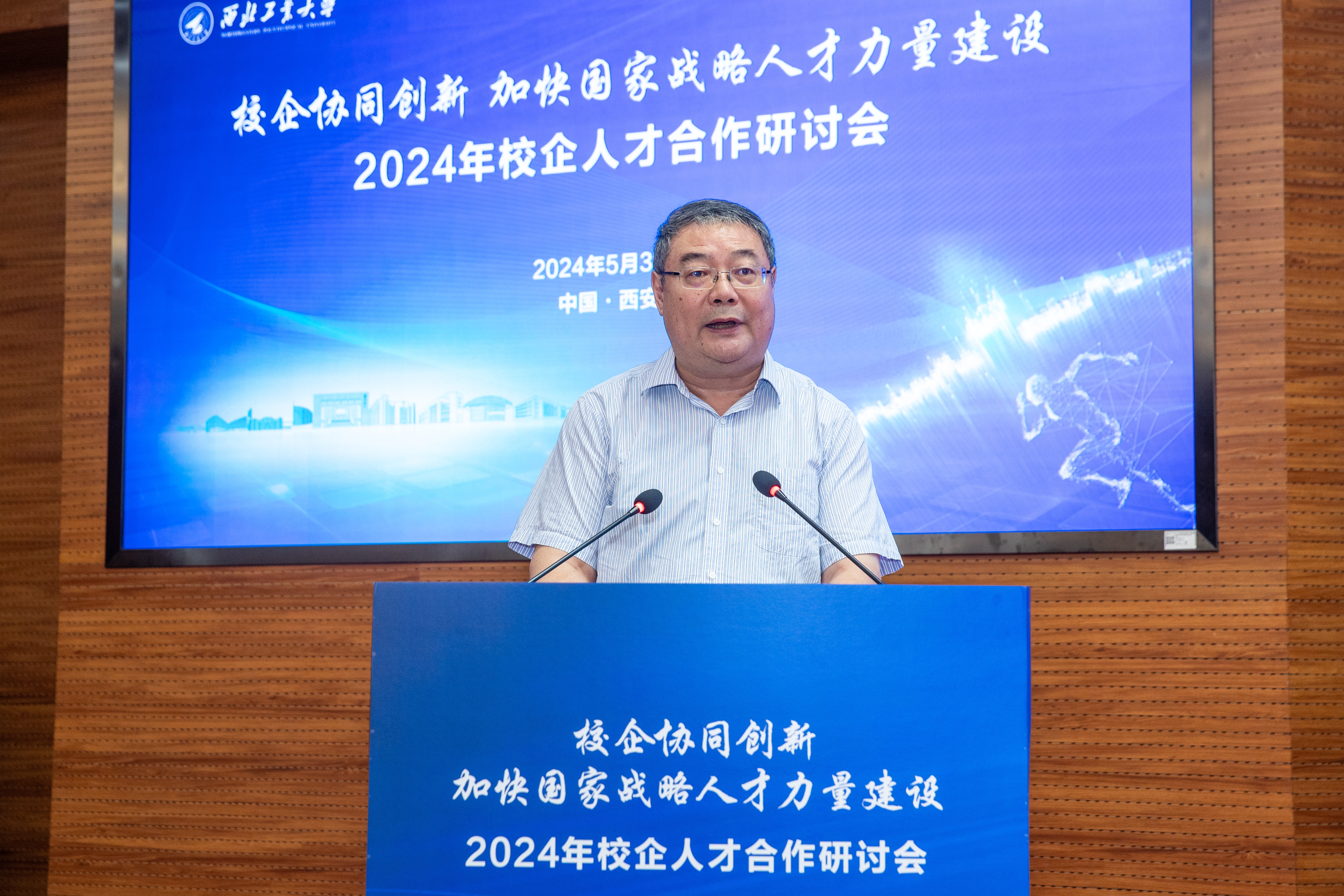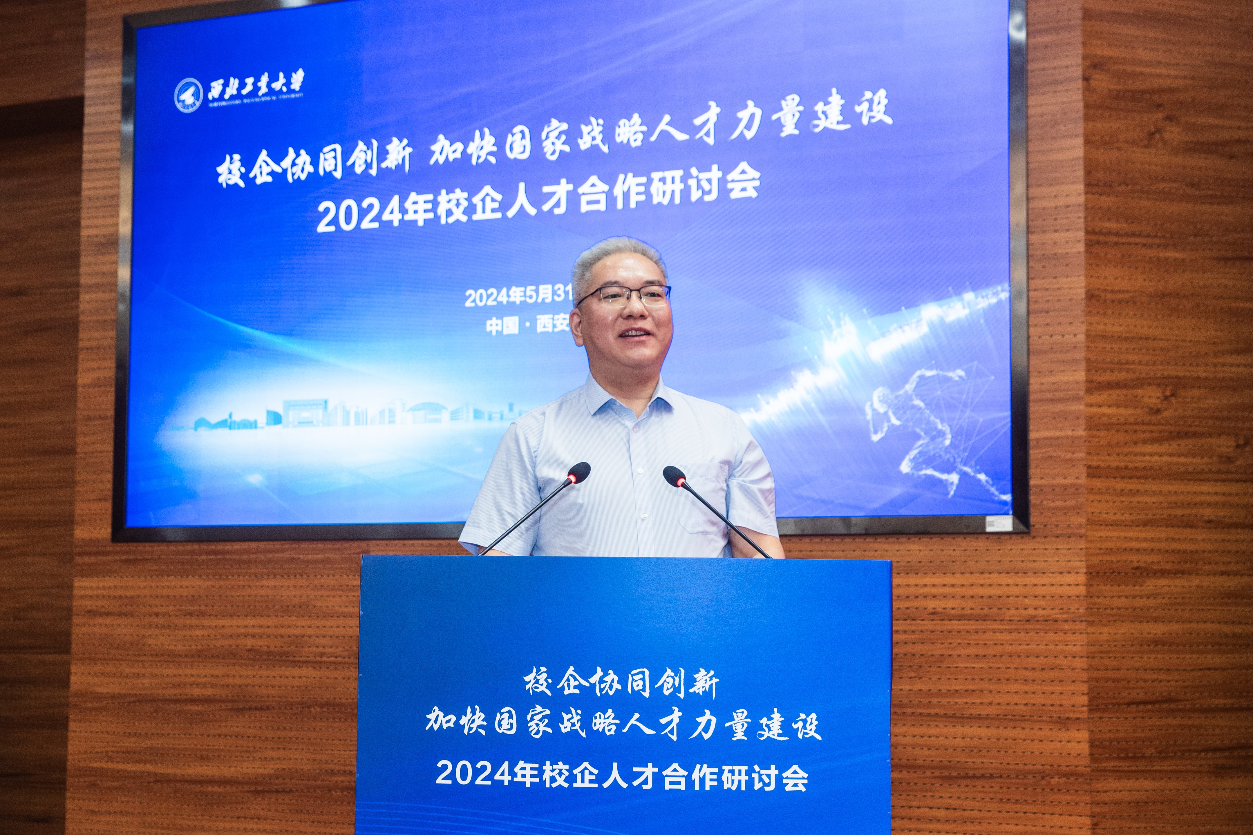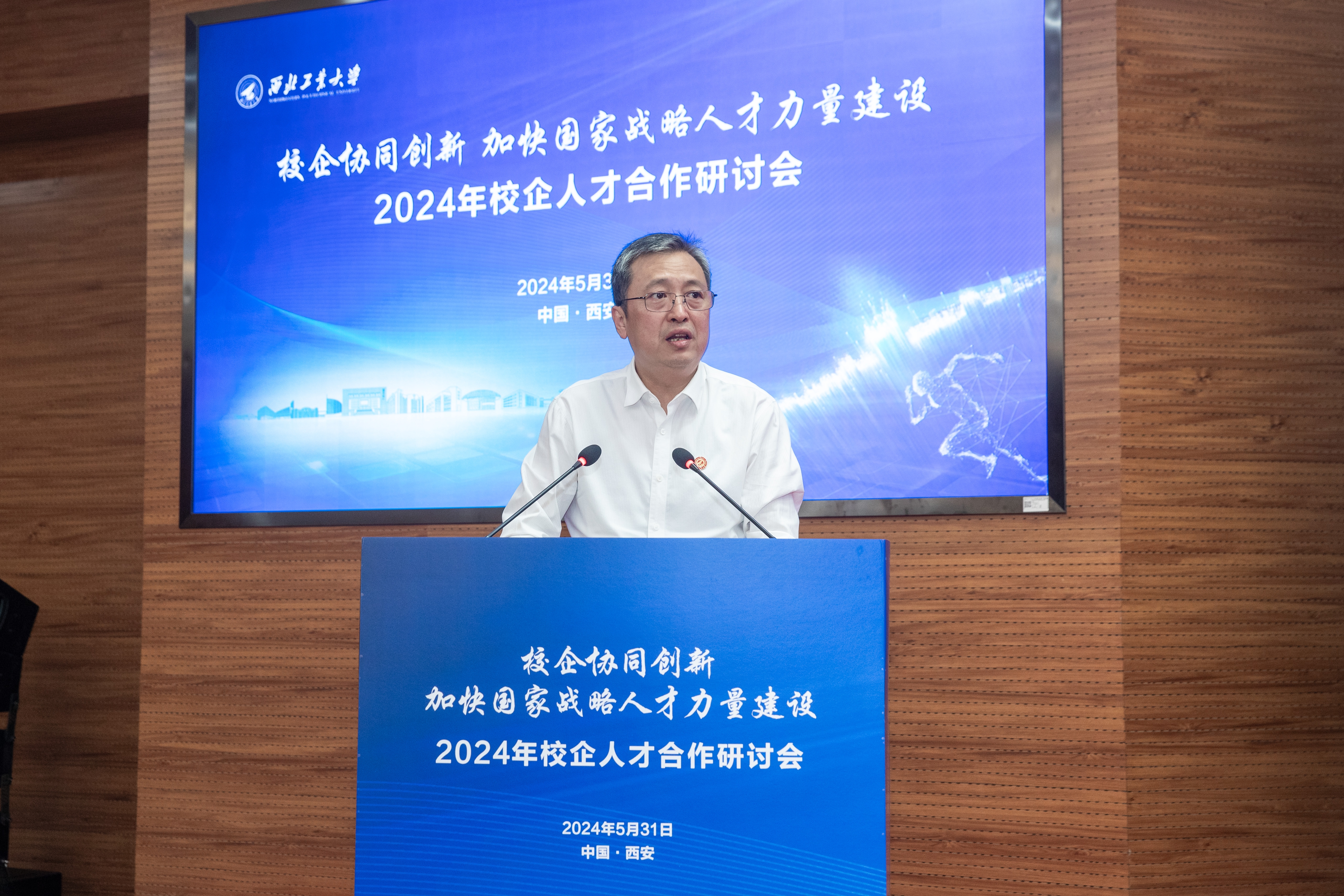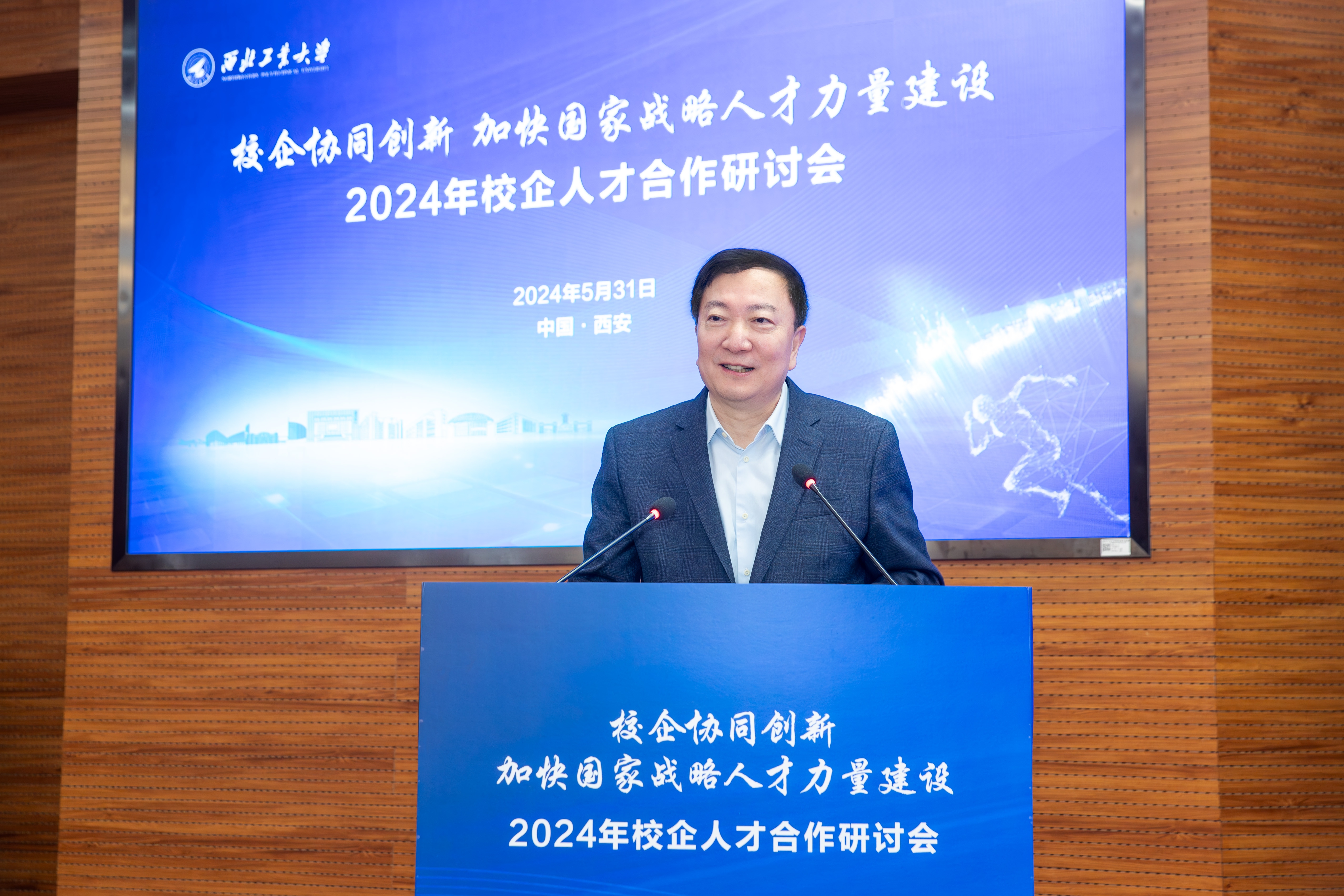 李言荣代表学校欢迎大家。他重点就两个方面进行了阐述:为什么现在我们要特别强调人才的校企合作,高校如何进一步深化与军工院所的人才合作。他说,当前我国科技自立自强,拔尖人才自主培养,教育、科技、人才三位一体发展,教育强国,国防现代化,新型工业化,新质生产力,等等,都说明了一点:那就是科技创新能力和创新人才在各个领域的决定性作用愈发凸显,这也是我国现阶段发展的最大卡点和堵点。我们说一切事业的发展都取决于人,特别是决定于人才的数量和质量。当前我国军工企业已进入创新驱动发展、科技引领未来的大发展时期,这对人才的渴求前所未有,与我们创建世界一流大学越来越相似,即都是高度依赖于人才队伍的建设,人才已成为了双方的刚需。近两年来校企双方互动越来越频繁,对抓人才的认识和措施越来越相近,所以我们的共同语言也越来越多。另一方面,企业是技术创新的主体,高校是科技创新的源头,双方共同的利益和共同的追求使得双方尽快取长补短的现实需求让校企走动越来越多,强强联合正当其时。他进一步强调,长期以来,西工大所形成的系统能力强、总师育人现象、成果转化“三项改革”等方面的特色优势,都得益于我们一直与军工单位的紧密合作、相互支持。他说,西工大毕业生扎根一线,形成了“愿意去、留得住、干得好”的传统,特别是近年来到国防科技工业领域就业比例连续超过40%,彰显了学校作为国防特色高校的担当,本次会议就是学校主动与产业部门和军工央企对接人才合作所迈出的重要一步,目的就是落实好党和国家对卓越工程技术人才培养的要求。他最后说,当前西工大正在着手解决两大问题:一是如何为国家培养更多的未来总师,这就要求我们要更加紧密的与军工单位一起有计划地为我们培养和锻炼更多的有工程技术背景的青年教师,我们已启动“百名优秀青年教师到企业兼任副总师”的项目,计划每年选派20位优秀青年才俊到军工企业参与型号研制,同时我们也要积极延揽聘请优秀的企业总师、副总师到高校来参加我们的未来总师培养;二是现在我们从工程系统里面梳理出来的“1到0”问题,非常需要与央企、军工企业、行业代表性企业一起来联合攻关,解决上下对齐、双向发力的问题。眼下比较好的抓手就是从校企联聘的重要人才开始。只有形成人才的双方共享、共赢和互动,校企人才合作才可持续、可推广、可复制,人才的作用才能最大化。
