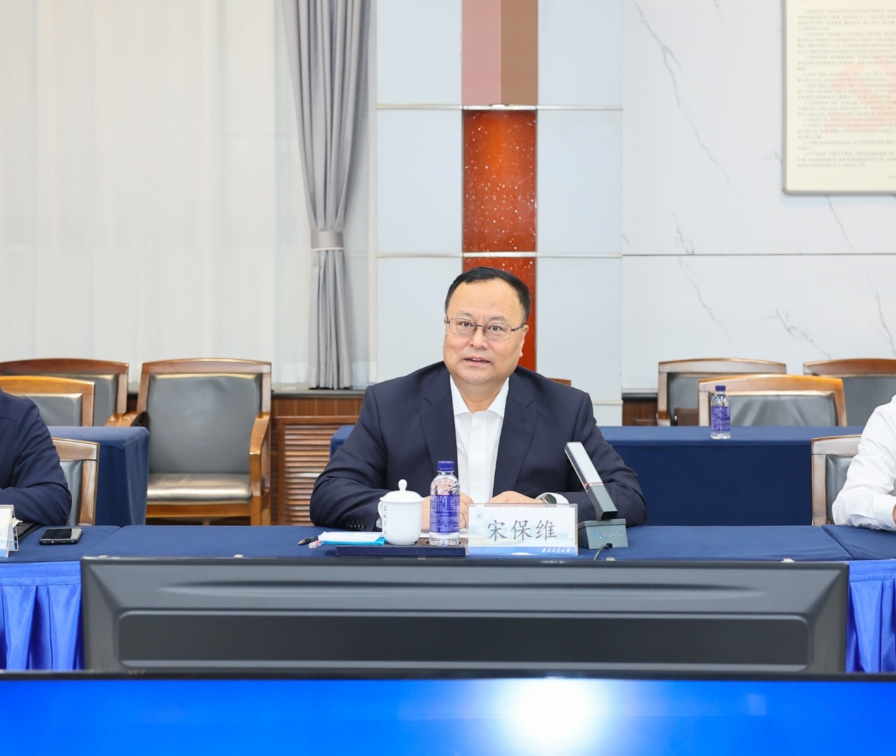 宋保维代表学校对贺东风一行来校共商合作、共谋发展表示欢迎,向中国商飞对学校事业发展的关心支持表示衷心感谢,并简要介绍了西工大“总师育人文化”特色优势。他指出,长期以来,西工大和中国商飞面向国家航空强国战略任务和大飞机产业发展重大需求在多个领域开展联合攻关,取得了良好的成效,双方都肩负着光荣使命,血脉相连,友好关系源远流长。他表示,一大批优秀校友聚焦国产商用飞机基础研究、技术攻关、前沿探索研究等在中国商飞建功立业,中国商飞为西工大“总师型”人才培养提供了良好的平台,西工大多个标志性成果项目也都受益于中国商飞的大力支持。期待双方以大飞机研究院的成立为契机,发挥在各自领域的战略优势,持续加强在科技协同攻关、卓越工程师和工程硕博士培养、人才共引共育等方面的合作,进一步探索更多合作机会,构建更多合作平台,产出更多合作成果,践行航空报国使命,为加快推进学校双一流建设和推动我国大飞机事业快速发展作出新的更大贡献。