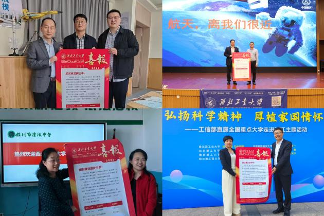 各招生组定期向全部生源中学送去荣誉喜报,反馈学生在西工大就读期间的获奖情况,促进两校之间的互动交流;邀请航模等科技表演进中学,点燃学生心中的科技梦;面向中学生及家长开展各类招生宣讲及咨询,为大家提供深入了解西工大办学情况、专业设置以及校园文化生活等方面的平台。