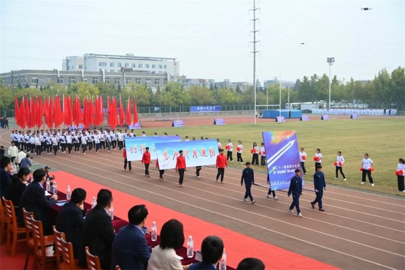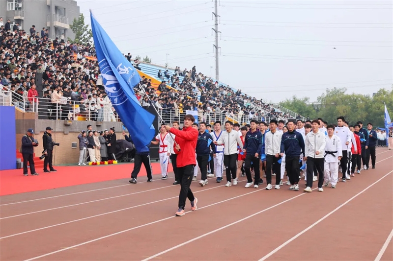 秋意正浓、金风送爽,体育场锣鼓震天、师生欢腾,伴随着欢快的运动员进行曲,国旗方阵、展板方阵、红旗队、鲜花队、裁判员方阵、冠军方阵和来自不同院系的运动员方阵等,先后入场。今后两天里,29支代表队将在赛场上你追我赶、不屈不挠,向着“更高、更快、更强”,以无畏的姿态绽放青春风采。