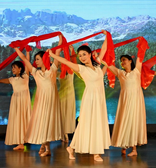 玛依拉舞蹈队带来舞蹈《林帕黛》,老师们含蓄而高雅,曼妙的舞姿具有浓郁的民族风格,展现出新疆美女的俏皮灵动。