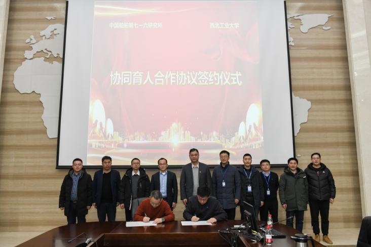 12月23日上午,航海学院与中国船舶集团公司第七一六研究所在连云港举行了实践实习基地签约授牌仪式。西北工业大学教务处副处长彭亮、航海学院党委书记孙华强、副书记王银涛、副院长雷波及实验教学与创新实践中心主任李道江,中国船舶集团公司第七一六研究所所长王松岩、人力资源部部长戴竟、人力资源部主任相晖、第二研究部副主任曹阳、高新技术部副主任刘明皓、所技术专家刘凯及第二研究部技术负责人常鹏等出席签约仪式。