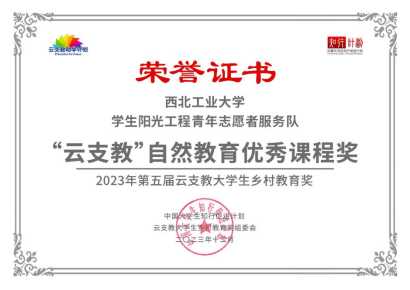 近日,在中国大学生知行促进计划(简称“知行计划”)组织的第五届“云支教”乡村教育奖暨全国关森委第三届全国大学生生态文明教育实践活动评选中,西北工业大学阳光工程青年志愿者服务队(以下简称“服务队”)再获佳绩。