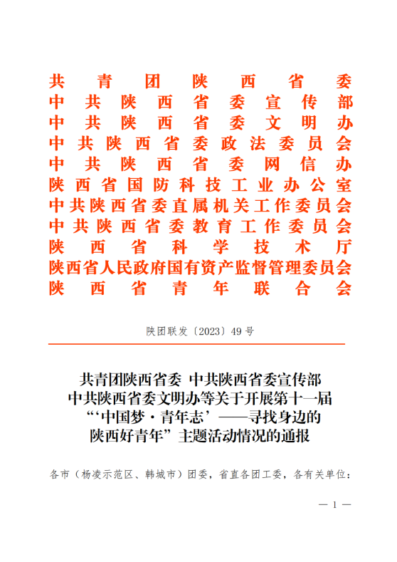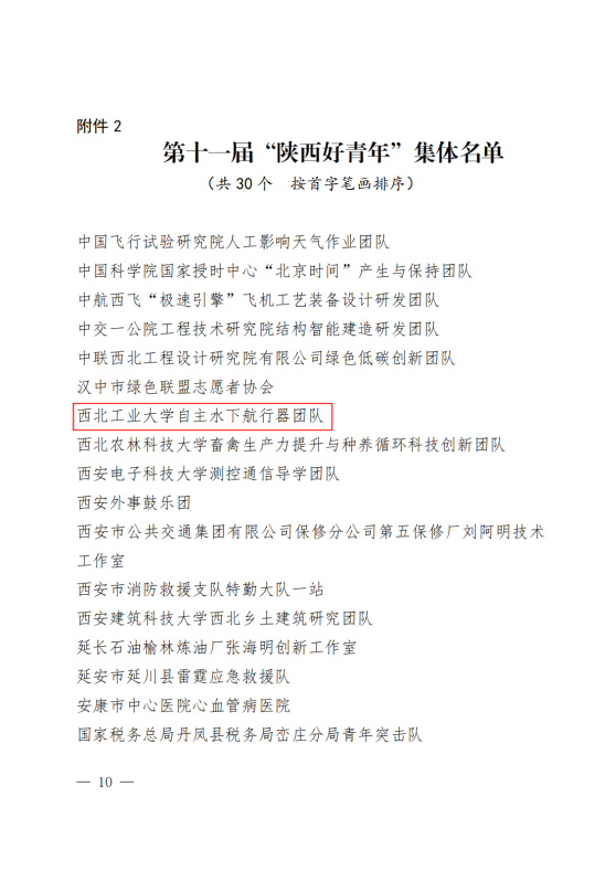 近日,由团省委、省委宣传部、省委文明办、省委政法委、省委网信办、省委军民融合办、省委直属机关工委、省委教育工委、省科技厅、省国资委、省青联等单位共同举办的第十一届“‘中国梦·青年志’——寻找身边的陕西好青年”主题活动结果揭晓,鸭脖官网自主水下航行器团队被推选为第十一届“陕西好青年”集体。据悉,本次活动经推报、初选、复核、展示、评审、公示等环节,共30个集体和61名个人获评第十一届“陕西好青年”称号。
