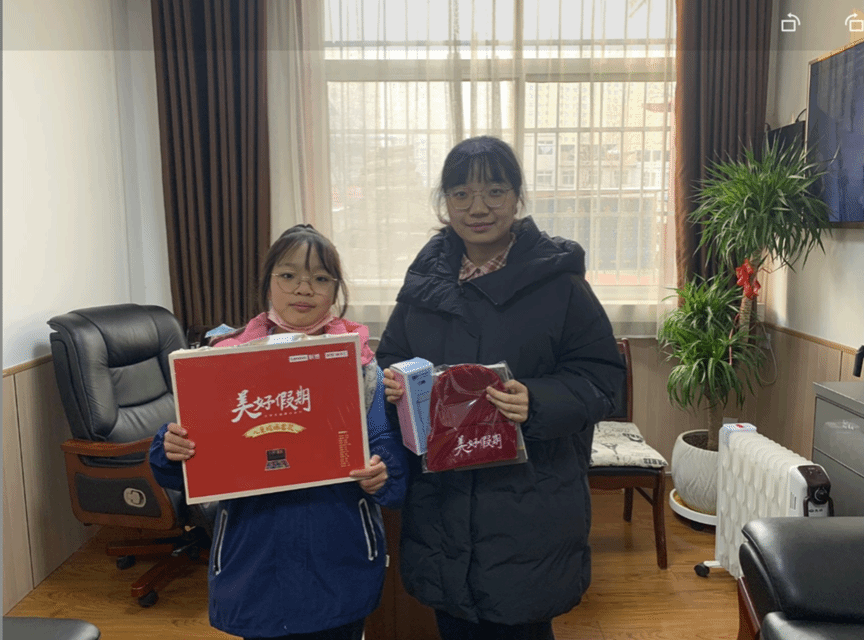 2021级本科生宋泽慧在春节期间前往3位村中留守儿童家中,为他们赠予爱心物资。宋泽慧和留守儿童们一起拜访了秋池小学的“门卫爷爷”,小朋友们将象棋和春联等物资赠予爷爷,以此表达他们对“门卫爷爷”的谢意与敬意。