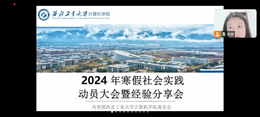 2024年1月18日晚,计算机学院团委线上举办了2024年寒假社会实践动员大会暨经验分享会。会上重点针对本次“美好假期”公益活动,结合2024年寒假社会实践相关通知要求,鼓励同学们将其与寒假社会实践“青担新使命”——“领航行动”专项深度融合,围绕“乡村振兴”战略,面向乡村社区中小学生开展互动式、有特色、接地气的“第二课堂”帮扶活动。