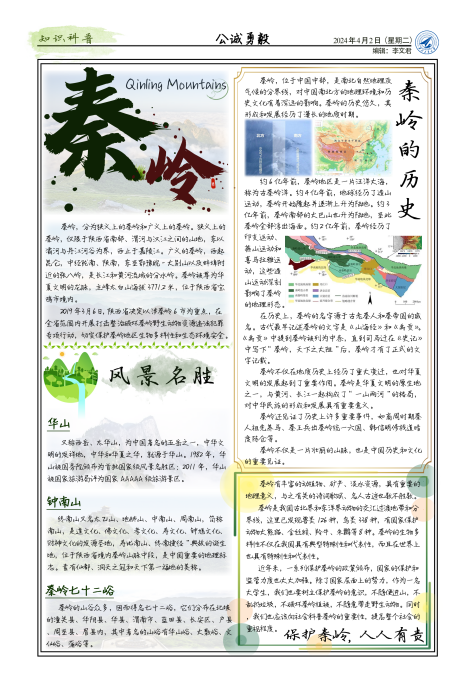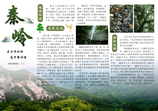 活动推出“绿染三秦”生态小报绘制活动。参与者需从秦岭风景、自然资源、历史文化、政策保护等角度,利用所学知识及个人创意,绘制出生动的生态小报。经过激烈的角逐,产生了一批主题鲜明、内容丰富、形式多样的优秀作品,充分展现出同学们对秦岭生态的关注和热爱。