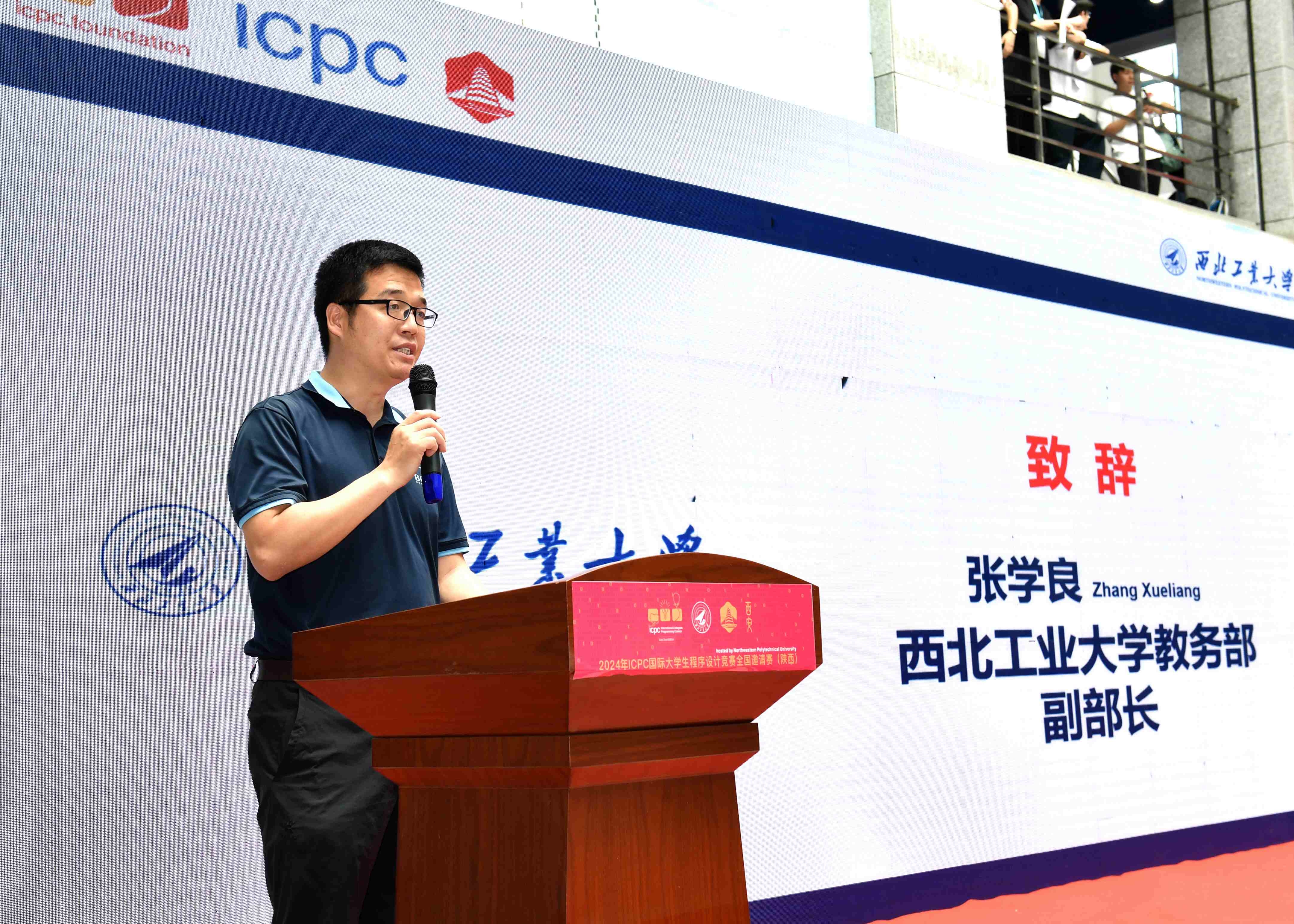 5月19日上午,在西工大长安校区实验大楼举办了开幕式。西北工业大学教务部副部长张学良、计算机学院党委书记李春科、国际大学生程序设计竞赛亚洲EC委员会主任、北京大学人工智能研究院副院长李文新、ICPC亚洲委员会共同主任姜学锋、华为技术有限公司和苏州同元软控信息技术有限公司的企业代表等嘉宾出席了开幕式。开幕式上,张学良介绍了西工大学生学科竞赛活动的实施情况,表示将努力为参赛选手和教练提供优质的服务。李文新盛赞西北工业大学是ICPC竞赛在中国蓬勃发展的重要支撑力量,有着举足轻重的地位。李春科向所有参赛选手和教练员介绍了计算机学院与ICPC彼此成就、共同进步的历程,介绍了计算机学院在第五轮学科评估中所取得的成绩,并欢迎参赛队员后续到西工大深造。